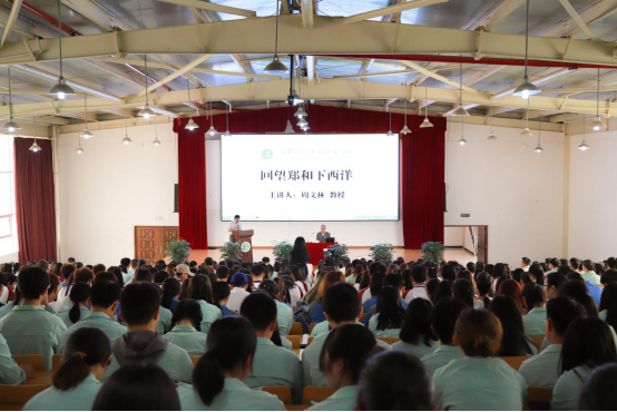 周文林教授由浅入深地讲述了中国伟大航海家郑和七下西洋的历史壮举,创造了世界航海史上的奇迹,铸就了中国古代航运业的辉煌,对东西方文化交流、经济贸易产生了深远影响。周文林教授说,作为当代大学生,郑和不畏艰险、勇于开拓、百折不挠的民族精神,正是我们所缺乏的,我们应该心存爱国之心,胸怀强国之志,要有创造美好生活的勇气和决心。