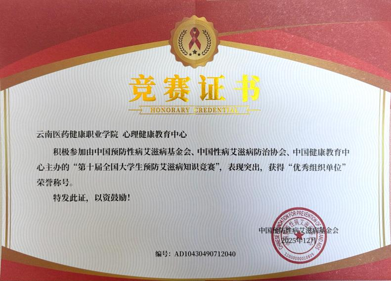 云南医药健康职业学院获全国防艾知识竞赛“优秀组织单位”