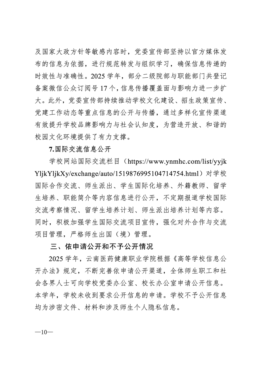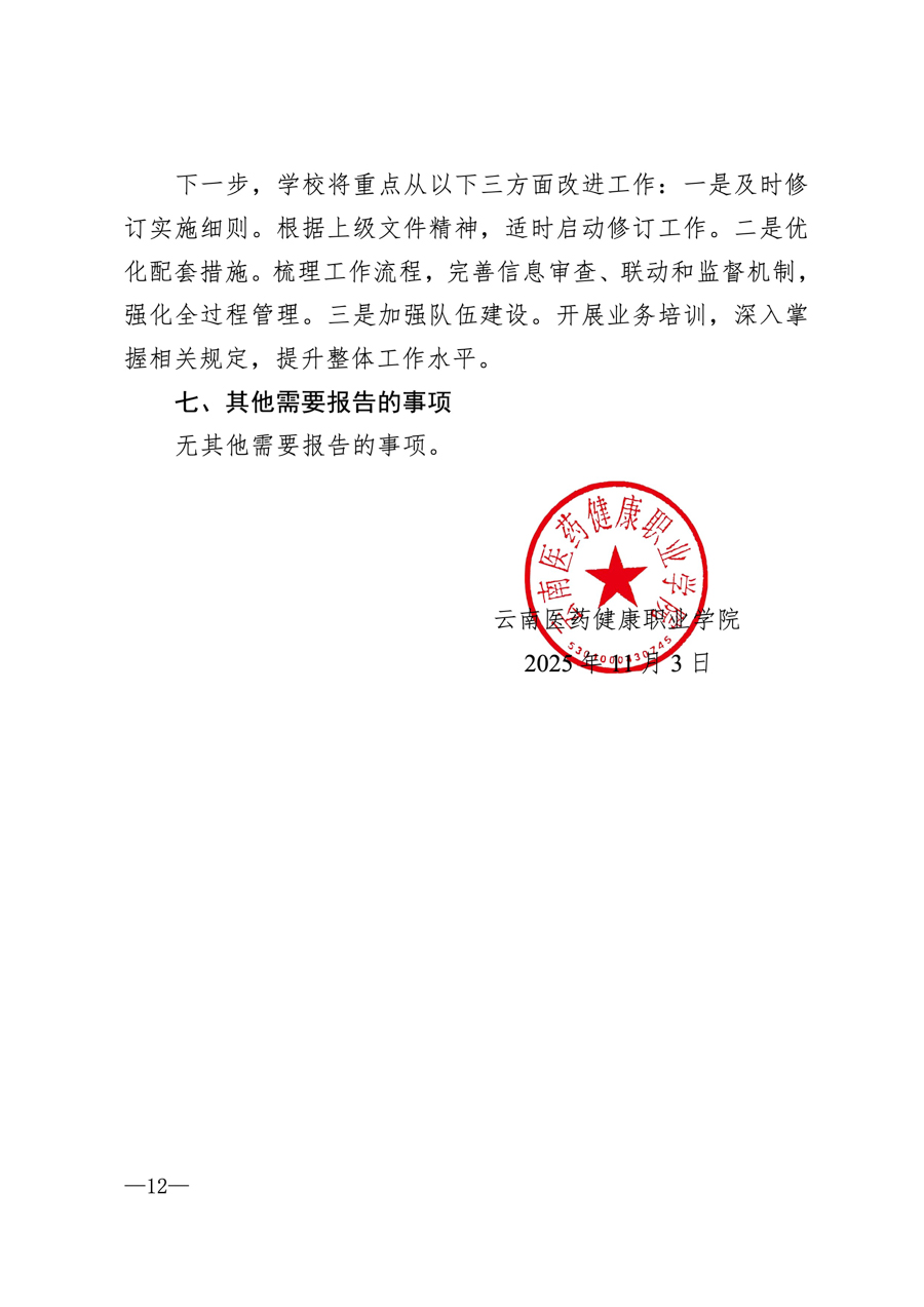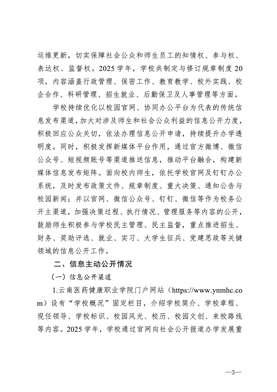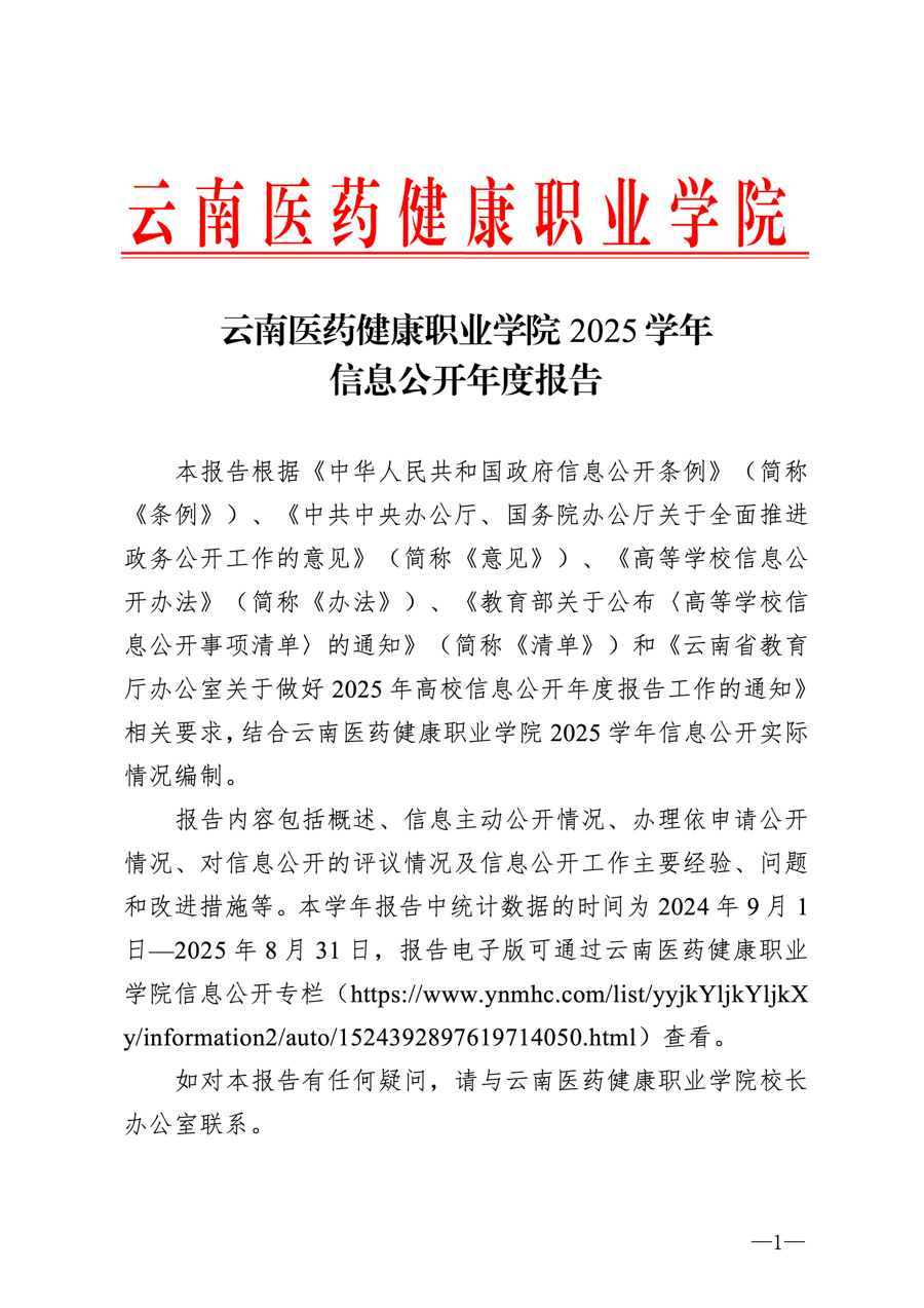 云南医药健康职业学院2025学年信息公开年度报告