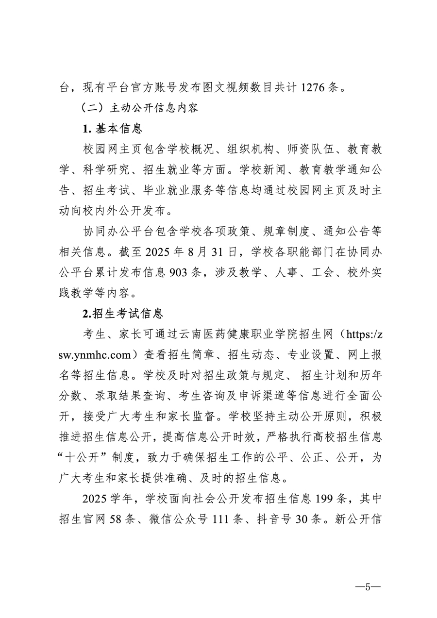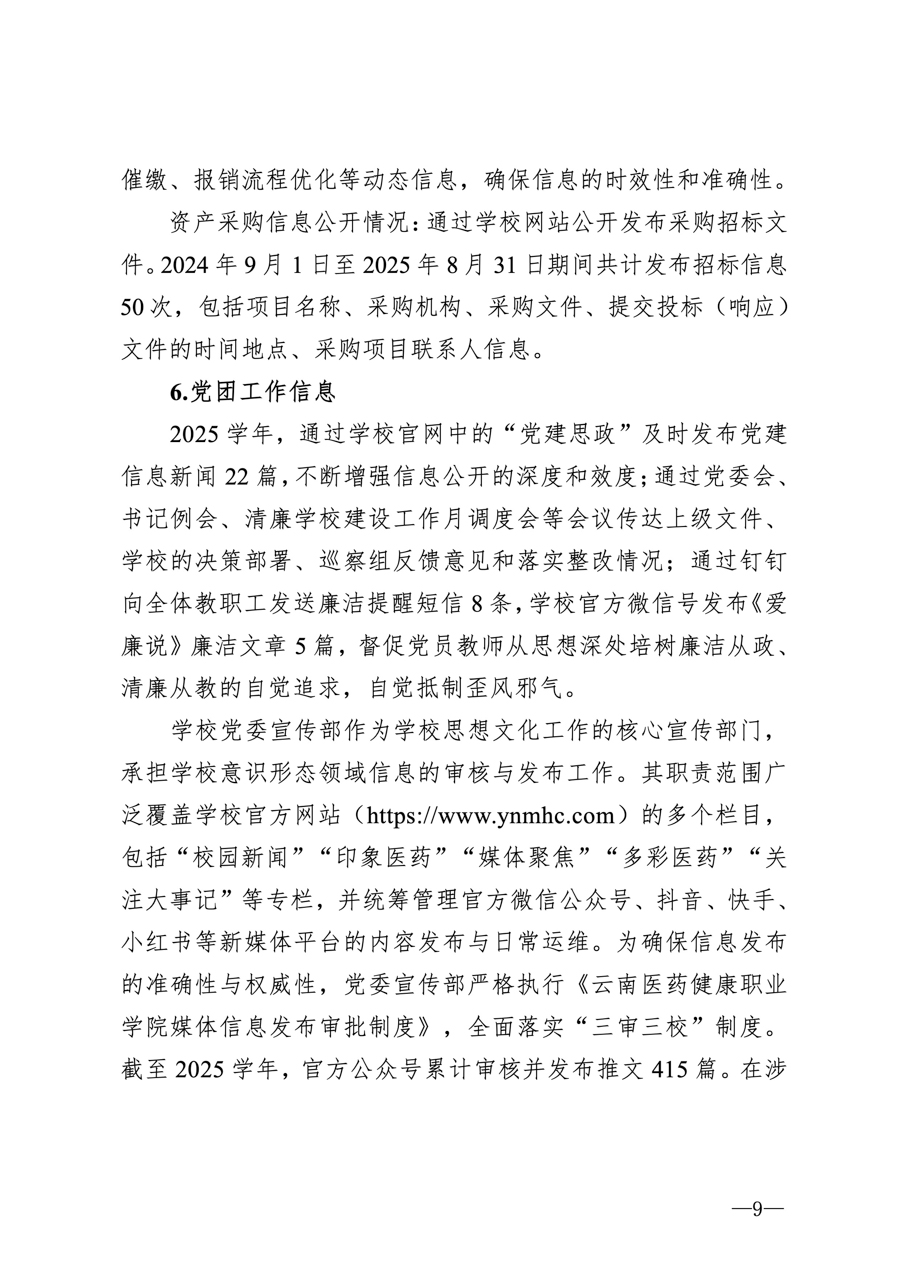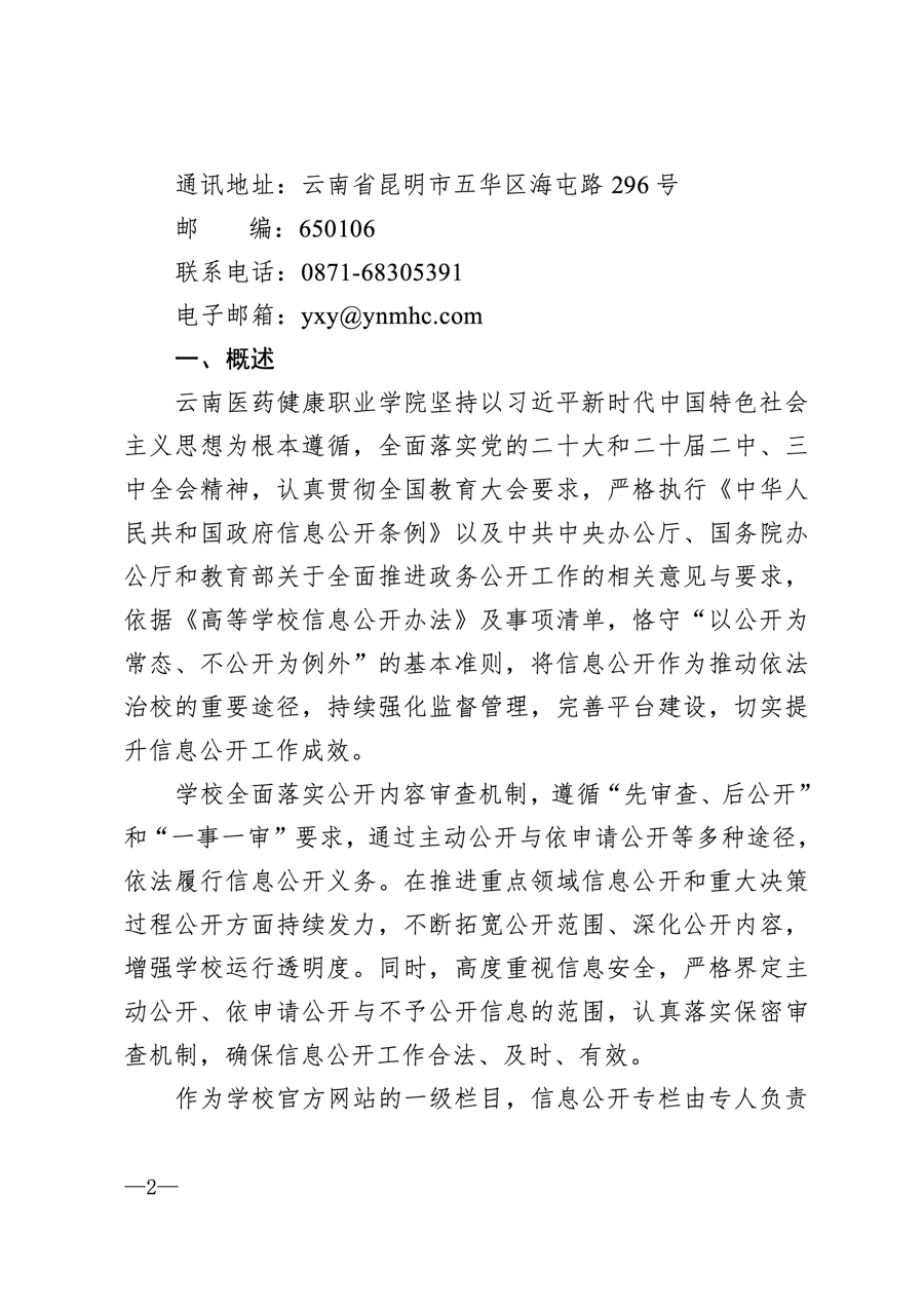 云南医药健康职业学院2025学年信息公开年度报告