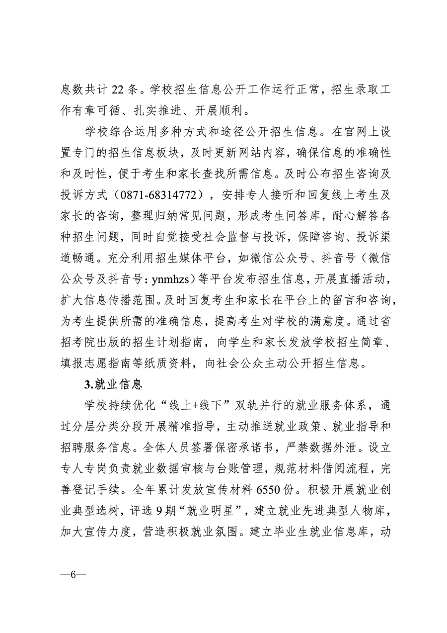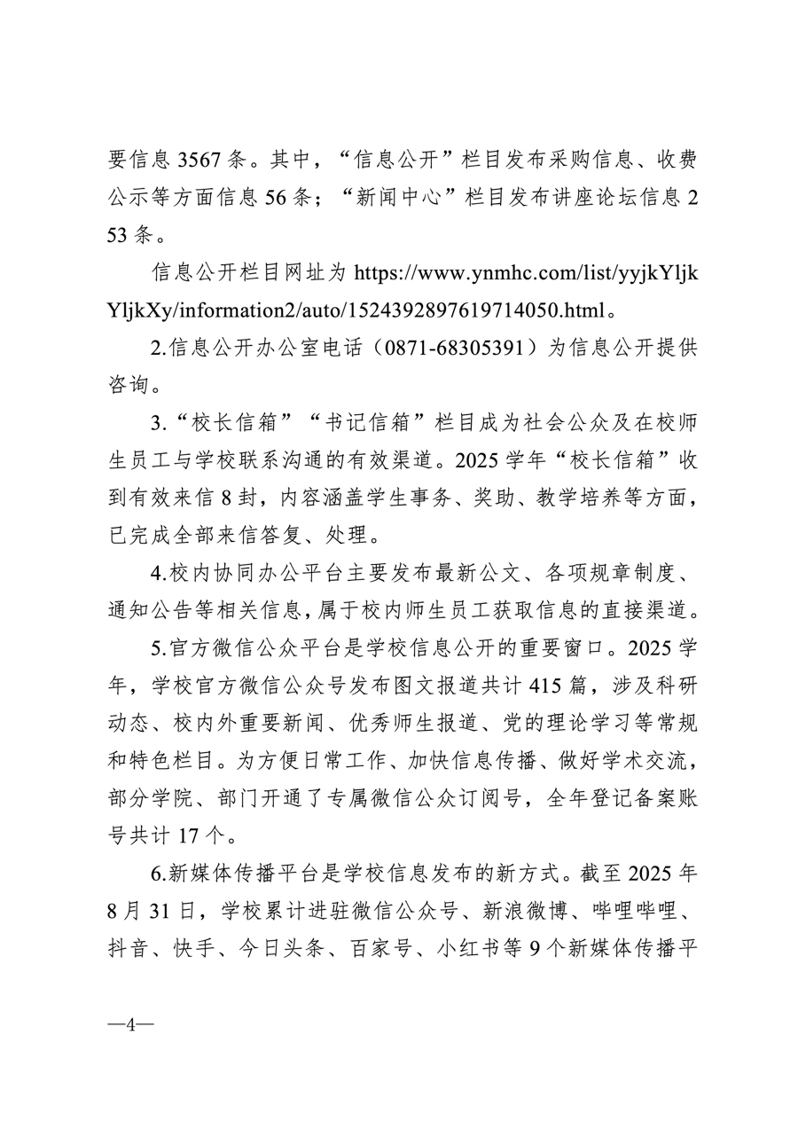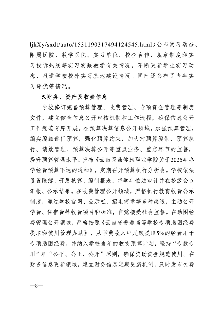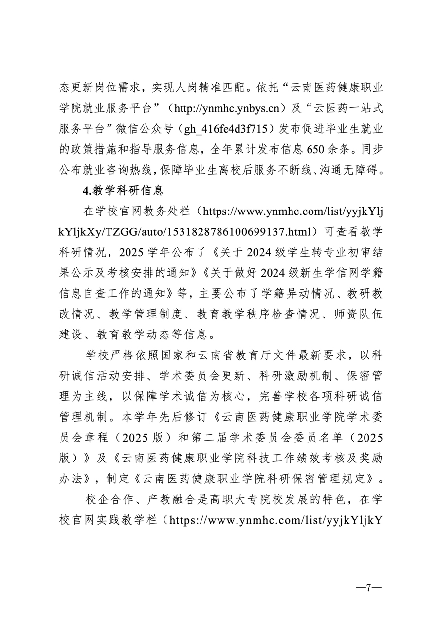 云南医药健康职业学院2025学年信息公开年度报告