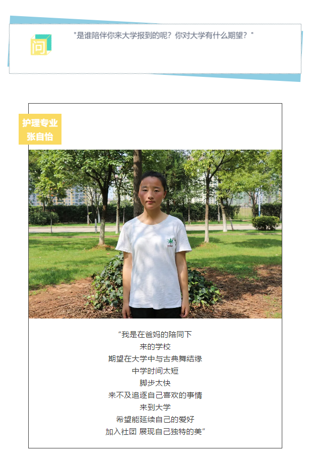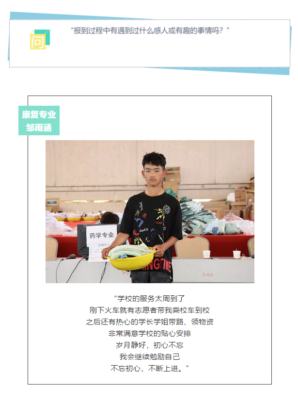 清晨的阳光 迎来旭日的第一缕芬芳 忙碌的新生招待工作 就从这里开始记起 刚入校园的第一眼青涩 背景墙前的合影留念 心中对大学的殷殷期盼 都在一言一行中记录下来 拖着载满爱的行李箱 带着对大学的憧憬 来到新的环境 作为长久陪伴大家的医小康 对各位也充满了好奇哟 下面就让我们一起来听听 萌新们怎么说的吧?