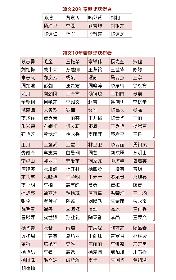 他们就是翰文学习进步奖、教学科研突出贡献奖、优秀外聘教师奖、优秀团队奖、翰文10年奉献奖、翰文20年奉献奖的获得者。