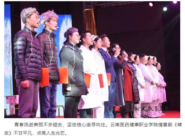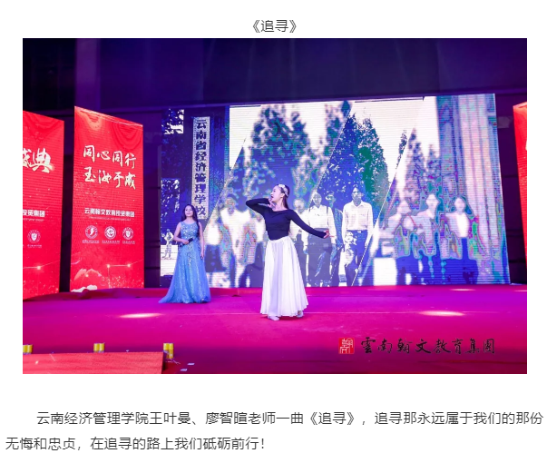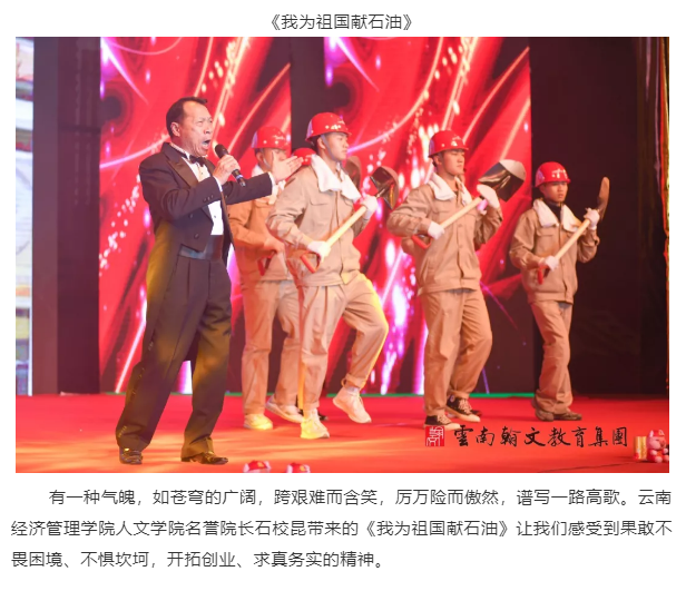 由侯德东、杨军、王艳琴、高远、温荣坤、张程等云南经济管理学院领导来带合唱朗诵。