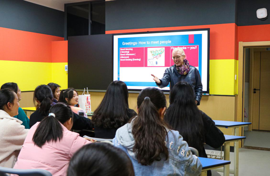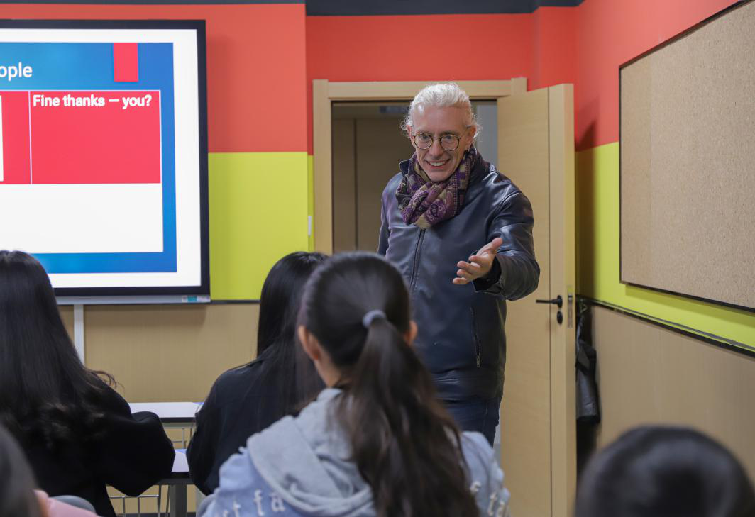 加拿大籍外教Manuel Richard Murray 为到场的各位师生带来了一堂生动活泼的英语活动课程。课堂开始后Richard老师一步步有趣且耐心地引导,同学们逐渐适应了全英文的课堂环境,并开始尝试大胆开口与外教和同学们交流互动。随着课程的进行,同学们学习、使用英文的兴致越发高涨,沉浸在学习中、了解文化的活跃气氛中,课程获得了参与同学的一致好评。