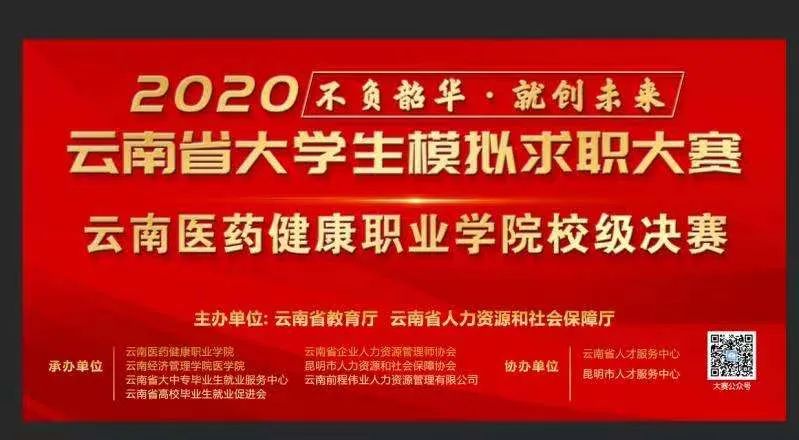 为贯彻党中央、国务院和省委、省政府关于稳就业的决策部署,全力做好我省高校大学生就业指导工作,加大就业服务工作力度,创新就业指导模式。11月18日下午19时,云南医药健康职业学院于昆明校区实验楼201国际报告厅举行了“不负韶华,就创未来”2020云南省大学生模拟求职大赛云南医药健康职业学院校级决赛。