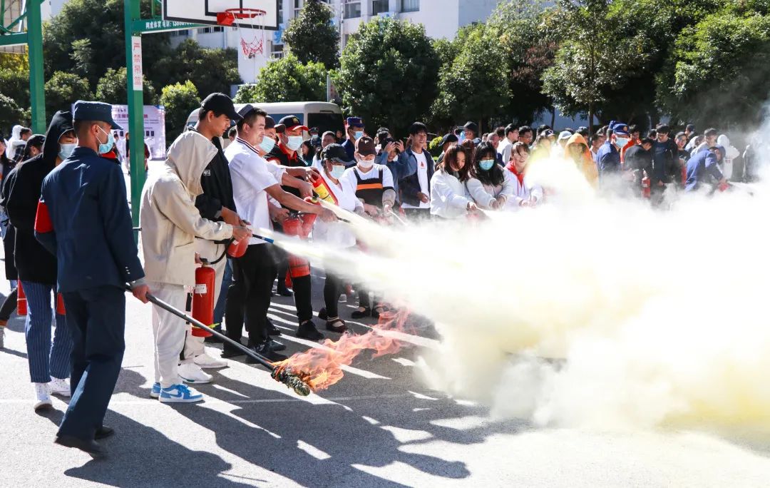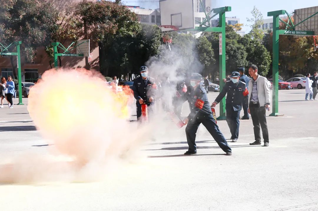 为深入推进学院消防安全宣传教育工作,进一步巩固消防安全管理水平,提高师生消防安全意识和自救互救能力,掌握基本的应急疏散技能及灭火器材的使用,11月19日下午14时30分,学院后勤保卫处组织师生及物业公司、学生公寓、食堂等部门工作人员1500余人参加应急疏散及消防灭火演练。此次演练活动邀请了五华消防大队玉峰路中队参与并指导演练。