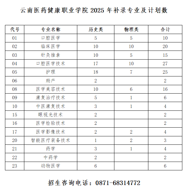 为满足未录取考生升学愿望,经研究,定于2025年9月13—14日进行云南省省内高职(专科)补录征集志愿工作。本次征集志愿涉及普通高考高职(专科)批部分高校。现将有关事项通知如下: